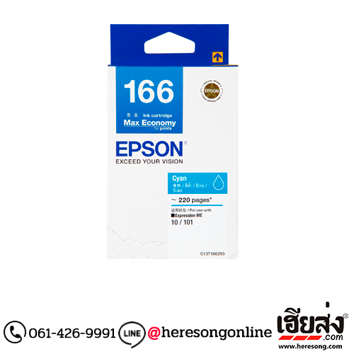 Epson T166290 Cyan ตลับหมึกอิงค์เจ็ท สีฟ้า ของแท้ (166) | เฮียส่ง.คอม